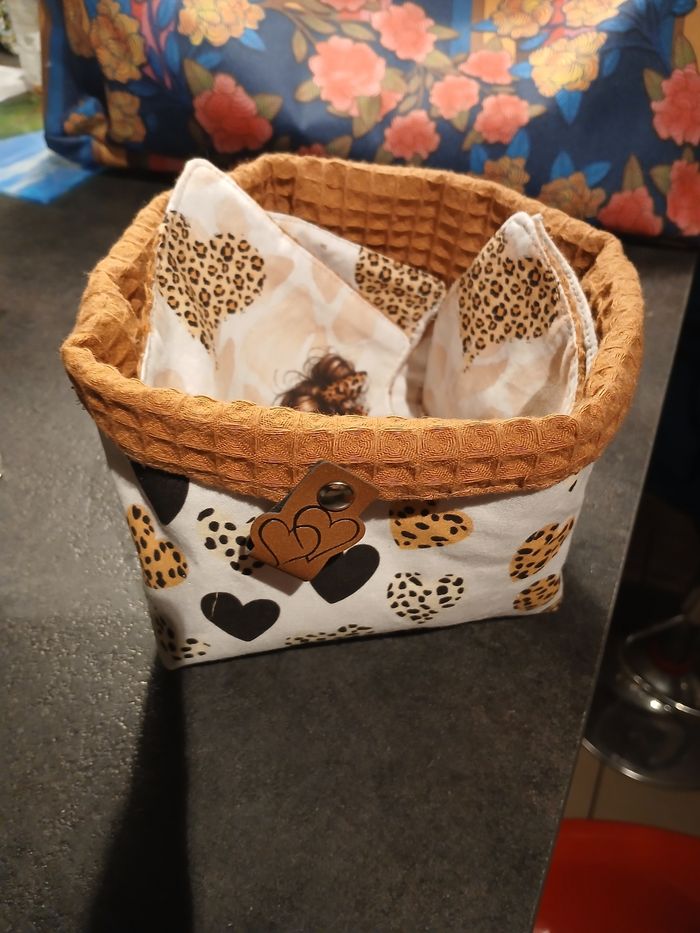 Panier avec ses 9 lingettes réutilisables fait main