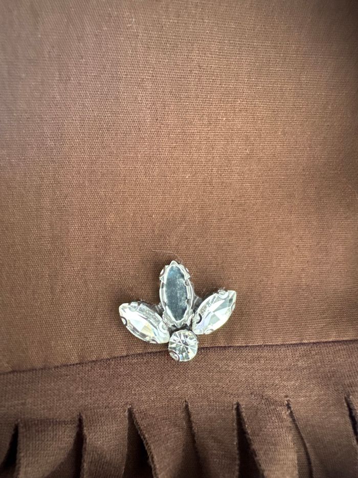 haut top chic mordoré et dentelle guipure noire T 36