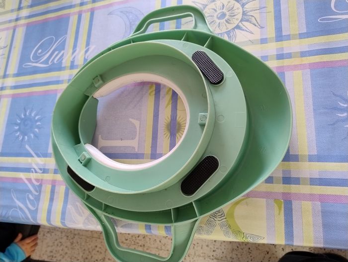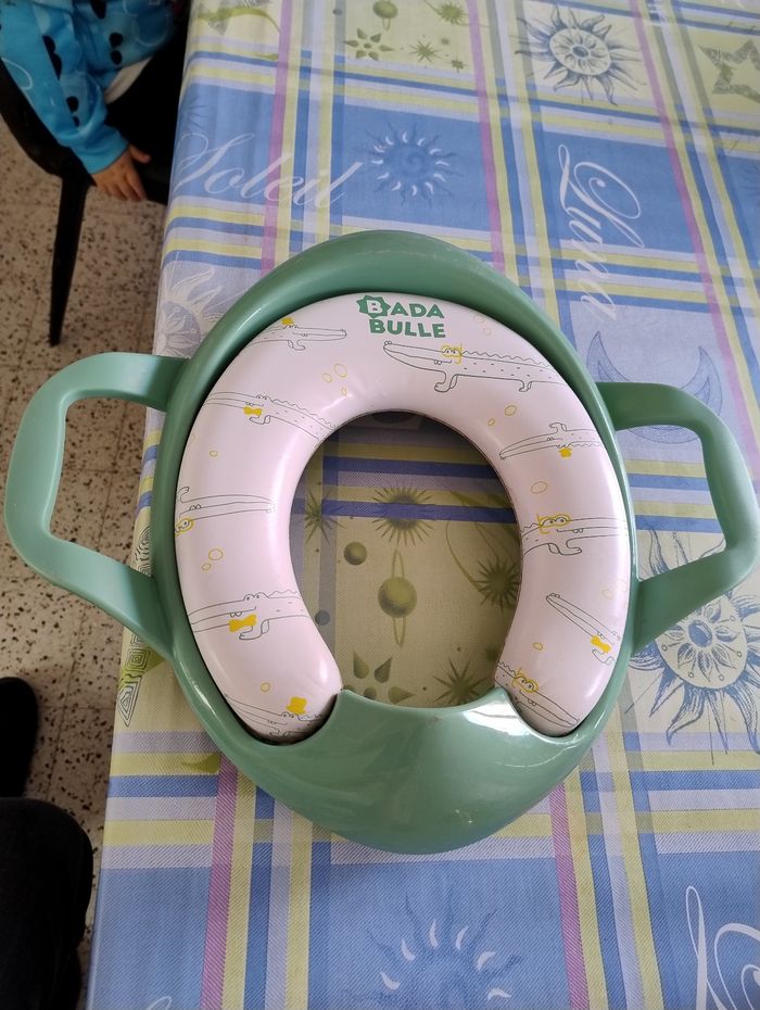 Réducteur de toilette pour enfant, idéal pour l’apprentissage de la propreté. Avec poignées pour plus de sécurité et de confort. Très bon état, propre. Motif sympa (crocodiles). Convient à la plupart des toilettes.