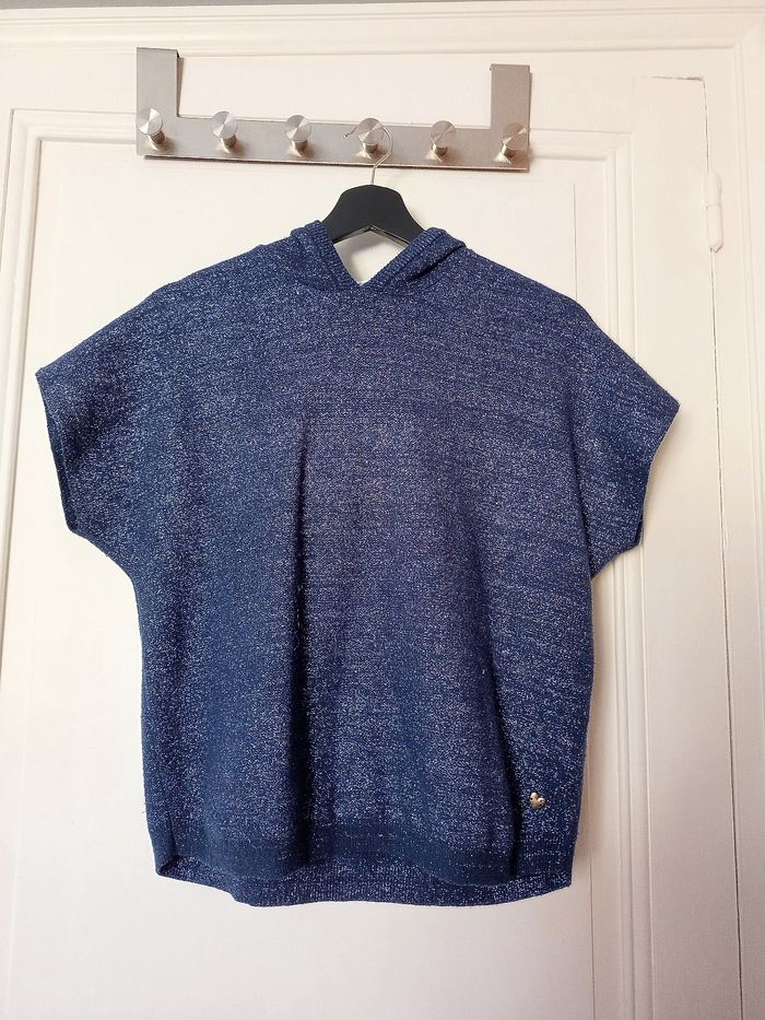 Pull sans manches avec capuche bleu et argenté pour fille Taille : 12 ans Très bon état Porté quelques fois