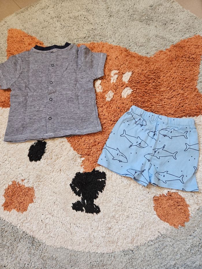 Ensemble requin en taille 3 mois de la marque Obaidi pour le t-shirt et Tex pour le short En très bon état J'ai d'autres articles de mon fils que je vais rajouter petit a petit, n'hésitez pas à jeter un coup d'œil #NoaM0604 #NoaM3mois