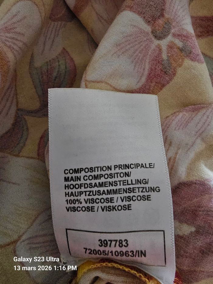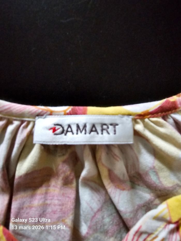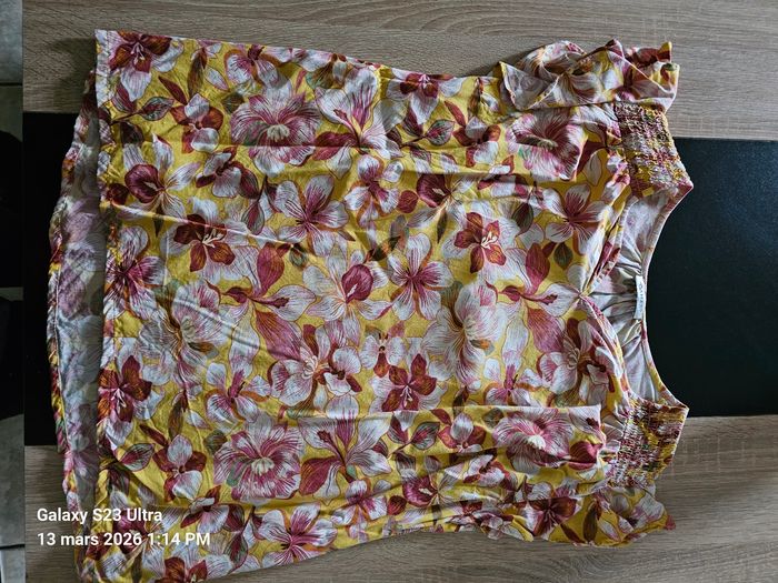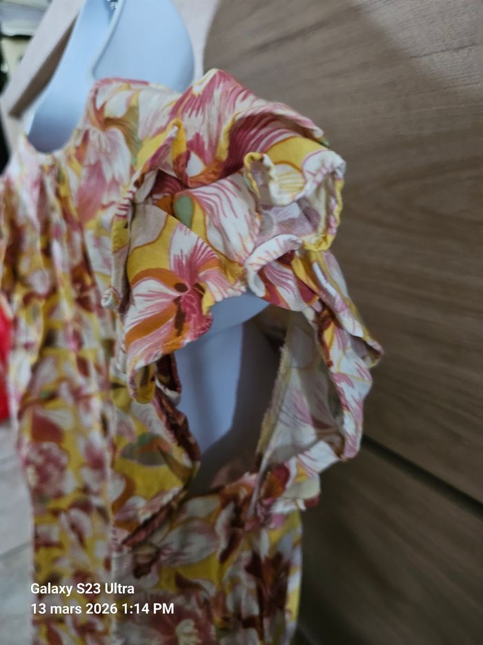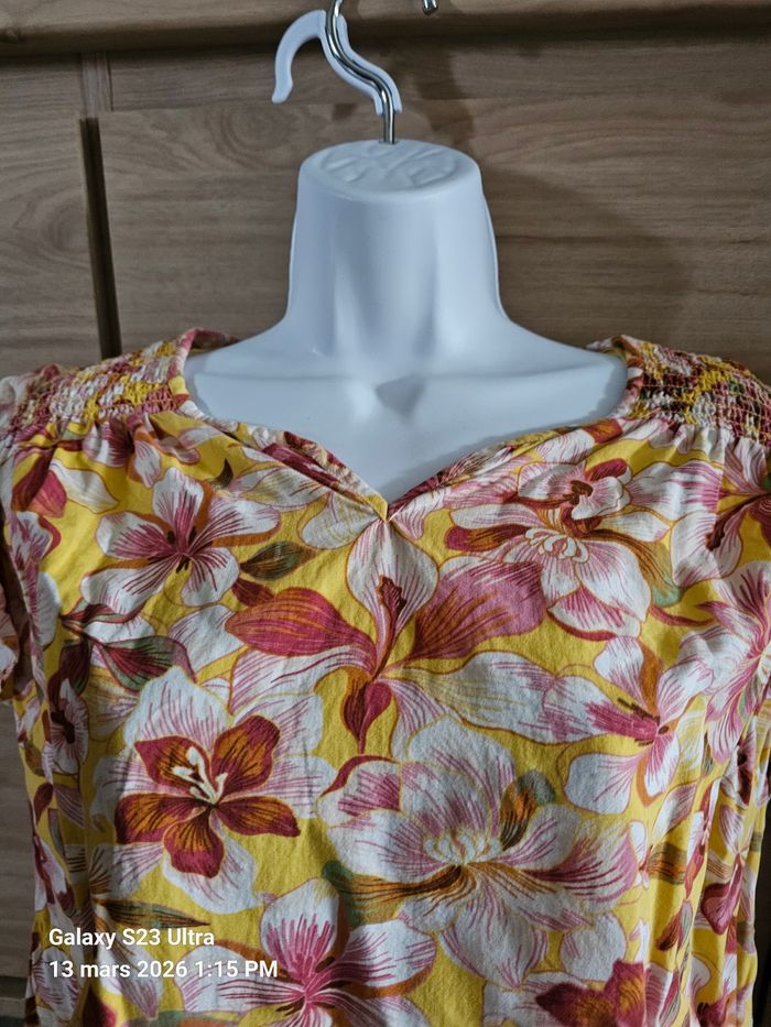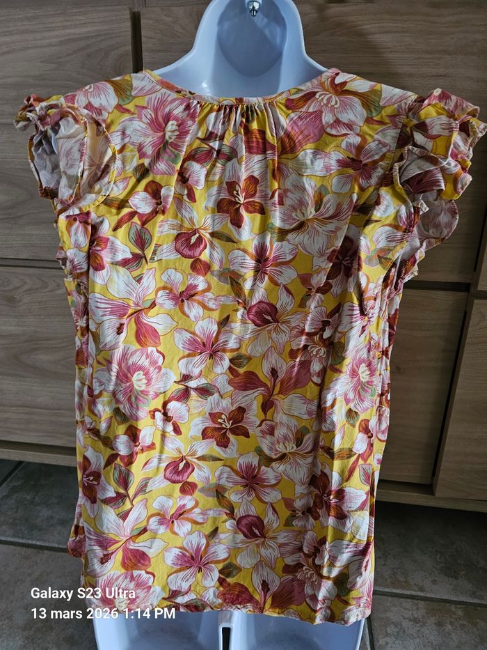 Joli top fleuri DAMART avec motif floral sur fond jaune. Coupe fluide et très agréable à porter. ✨ Détails : • Manches courtes avec volants • Décolleté en V • Dos légèrement froncé pour plus de confort • Tissu léger et respirant 📏 Taille : 40 (UK 12 / US 8) 🧵 Composition : 100 % viscose Parfait pour : • été • vacances • tenue casual ou bureau 📦 Envoi possible ou remise en main propre 💬 N'hésitez pas si vous avez des questions 🛍️ Remise possible si achat de plusieurs articles dans mon dressing. #damart #hautfemme #taille40 #teeshirt #floral #été