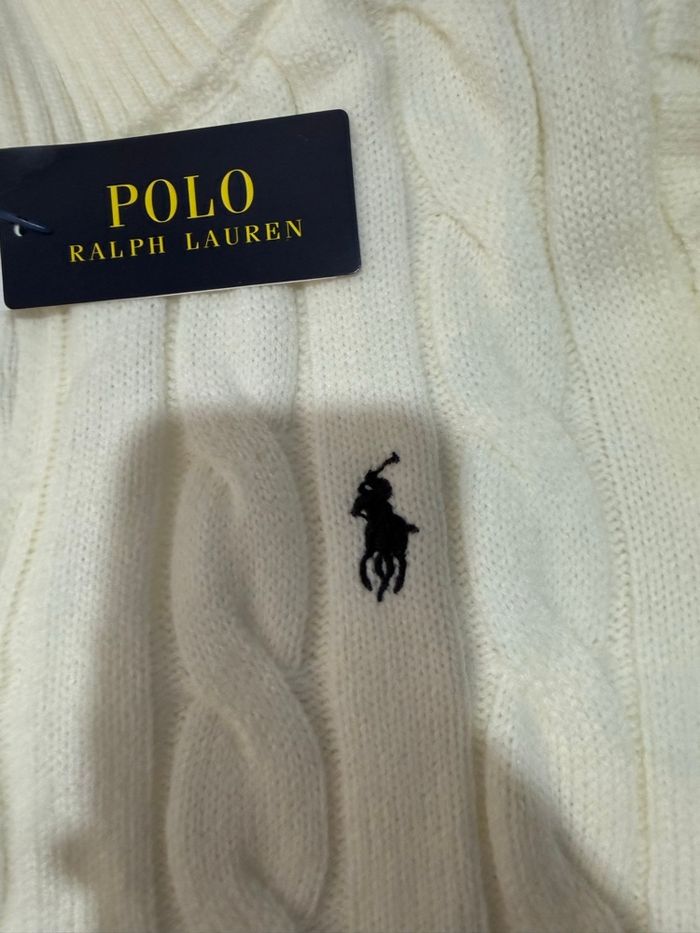 Pull zippé a col roulé Ralph Lauren homme taille xl original beige crème