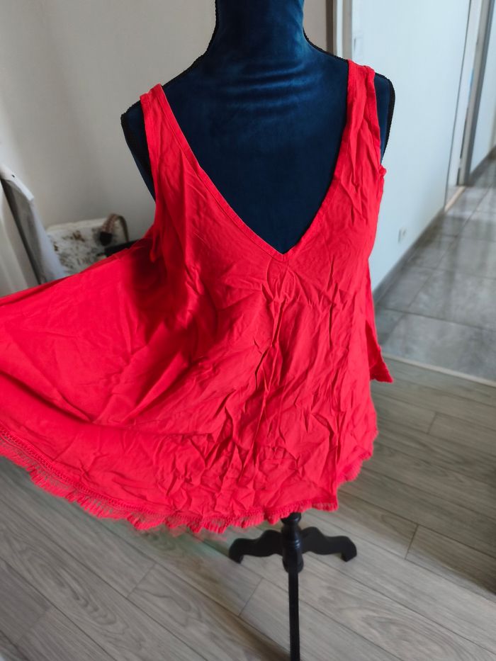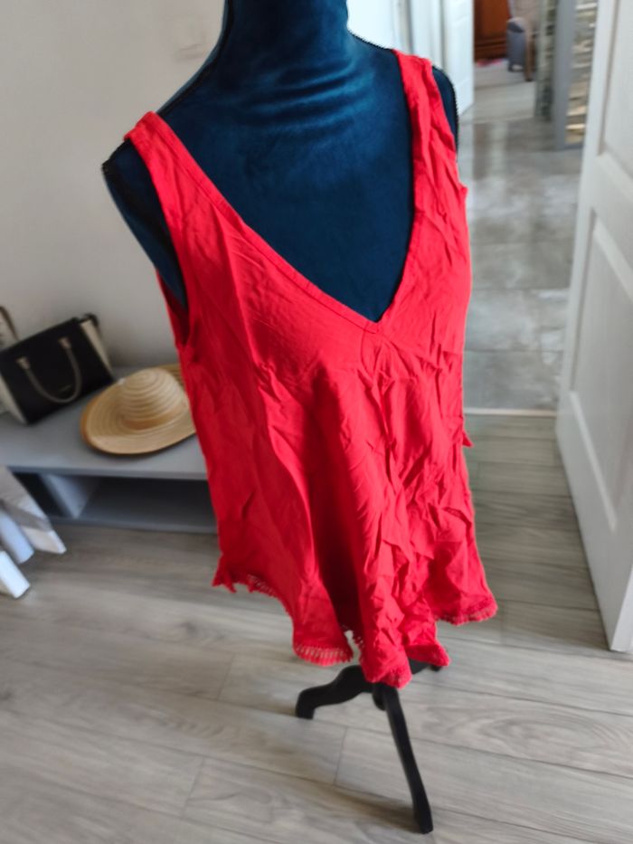 Jolie tunique rouge longueur 64 cm aisselle à aisselle 45 cm