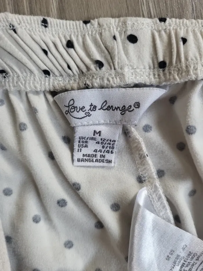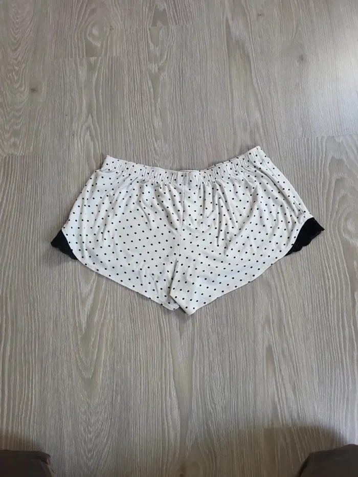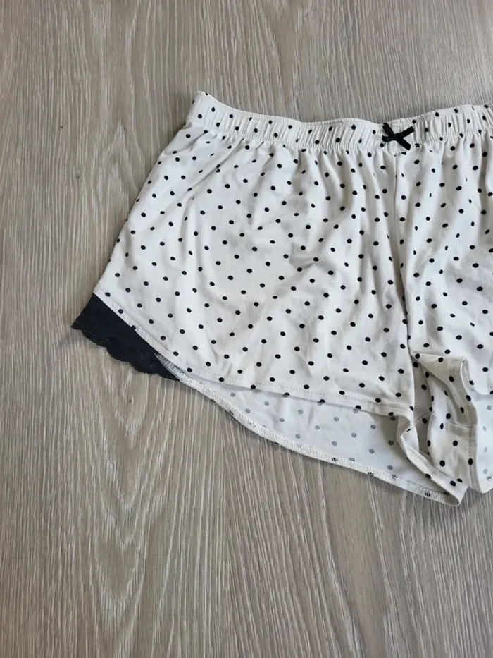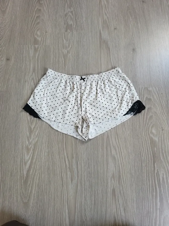 Short court, plutôt pour bas de pyjama Ceinture élastique Le tissu est très doux et agréable au toucher L'étiquette indique M et 40/42. L'indication M est incorrecte, il correspond bien à du 40/42