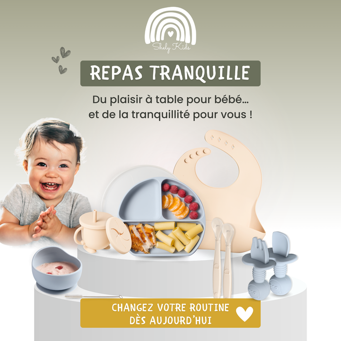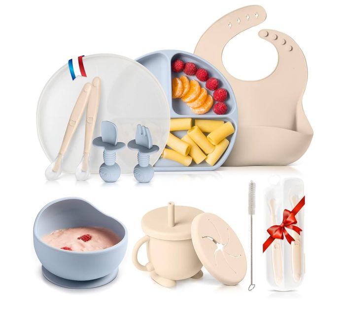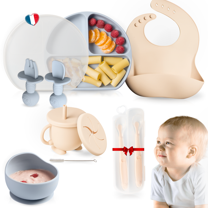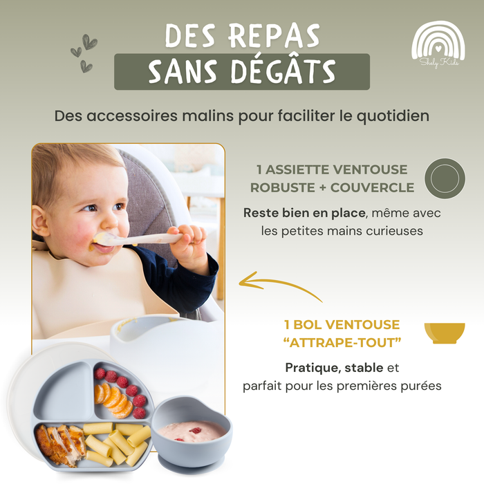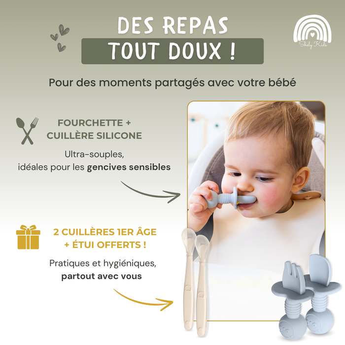 Ensemble repas silicone plus lot de 2 set couvert inox et silicone