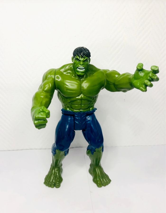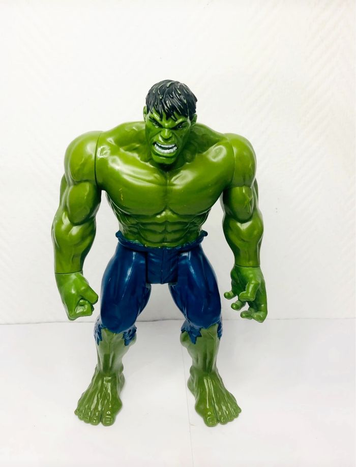 Figurine Hulk Marvel de 30cm, un incontournable pour les fans du super-héros ! Parfait pour les enfants qui adorent l'univers Marvel. - Type de produit : Figurine - Marque : Hasbro - Gamme / Licence : Marvel - Personnage : Hulk - Taille : 30cm - Année : 2013 - Âge recommandé : 4 ans et + En très bon état