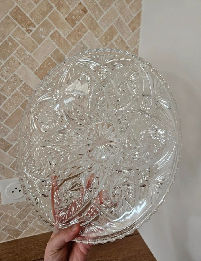 - grand plat pour service de table - en verre transparent -neuf - mesures et poids sur les photos