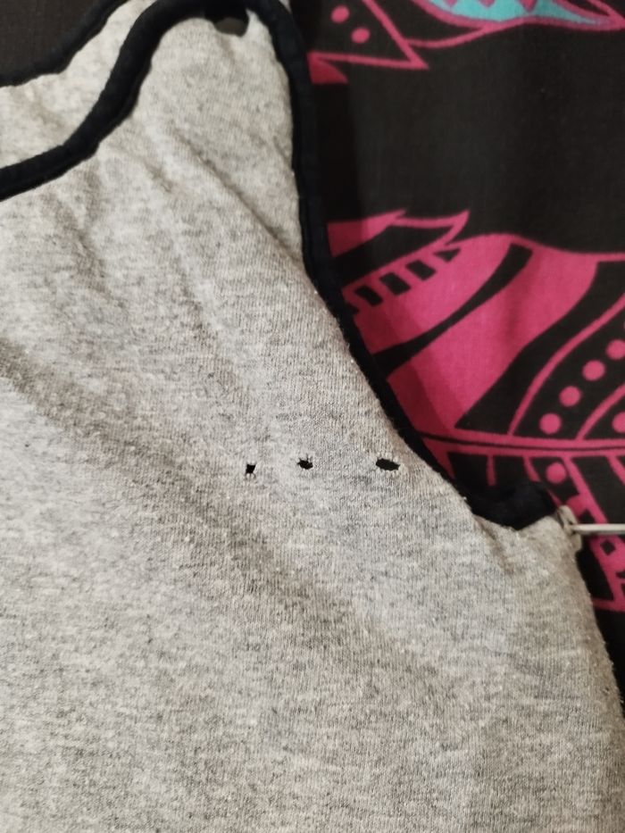 Vends gigoteuse bébé taille réglable par bouton pression voir photo 2 et petit trou sur le devant voir photo 3. 8€