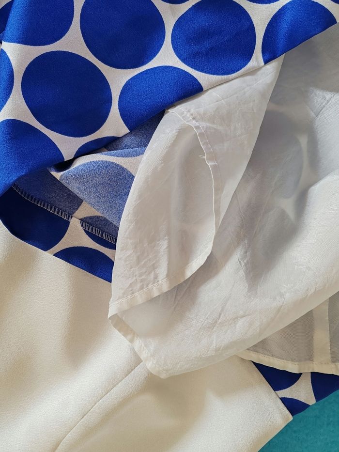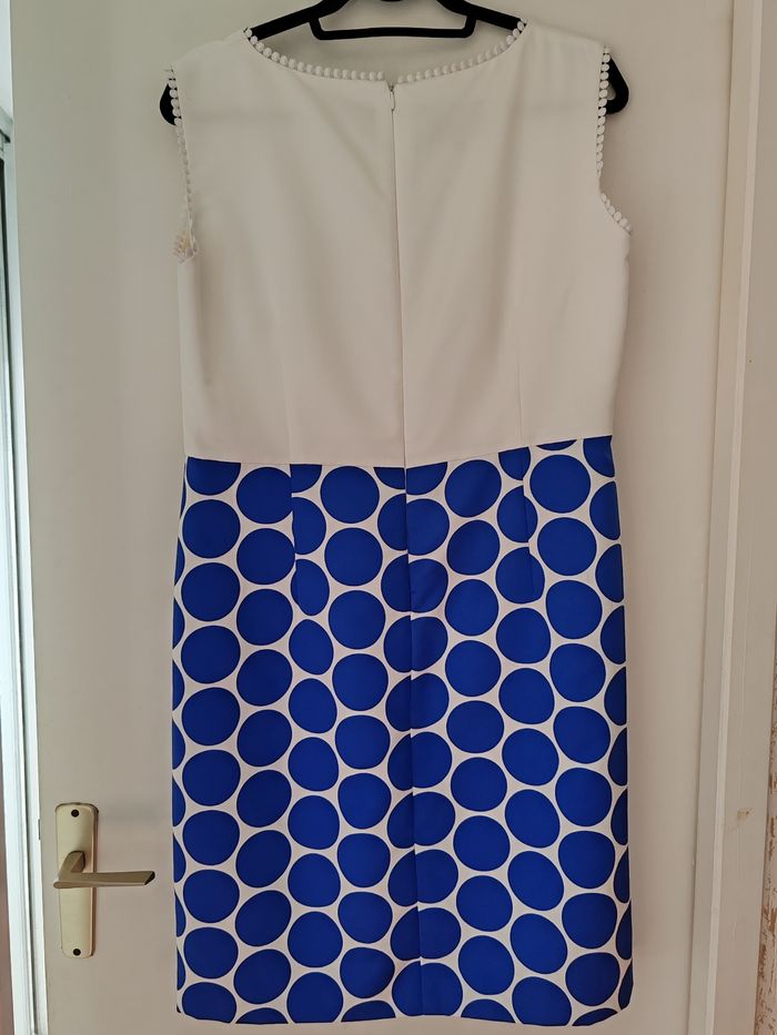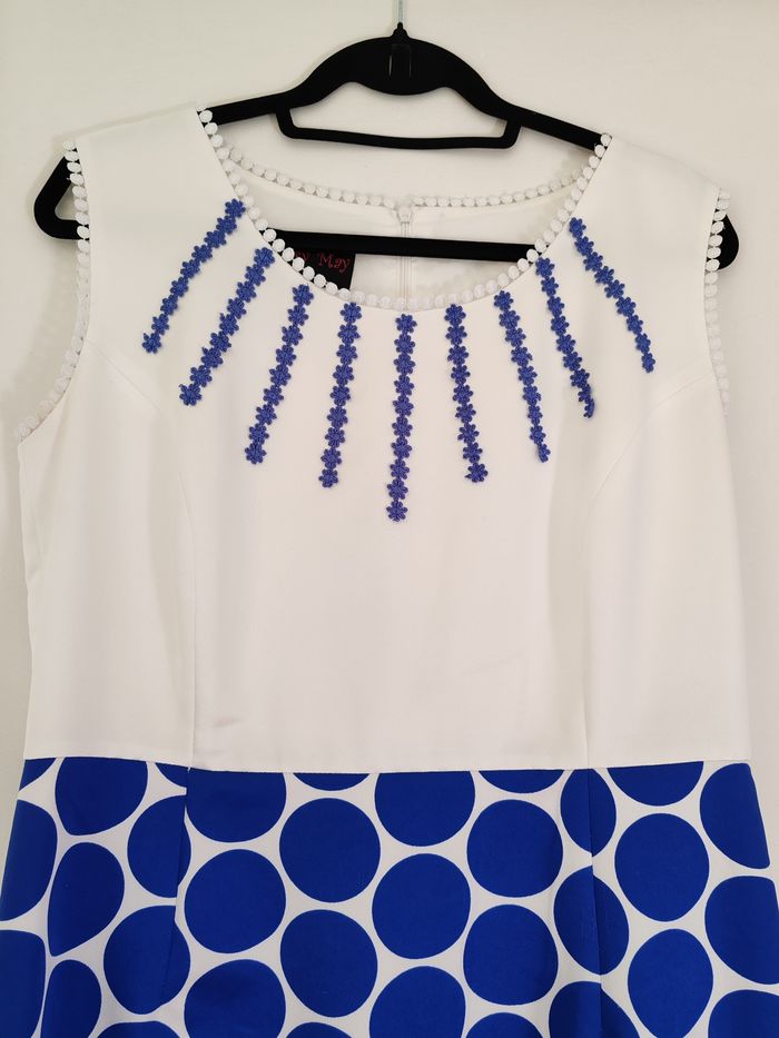 robe de cérémonie bicolore, avec un bustier blanc orné de perles en dentelle avec un bas bleu marine aux motifs géométriques, sans manches, fermeture éclair dorsale. Légèrement satinée. Doublée. - Coupe : Cintrée - marque : Daisy May