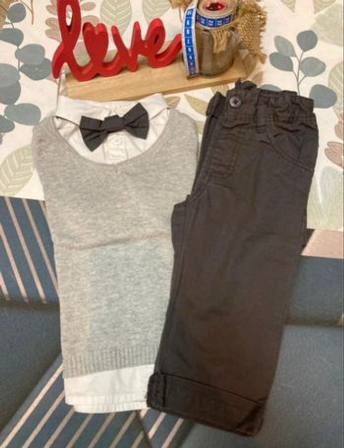 #lot 34 - ensemble cérémonie pantalon chemise avec gilet et nœud papillon