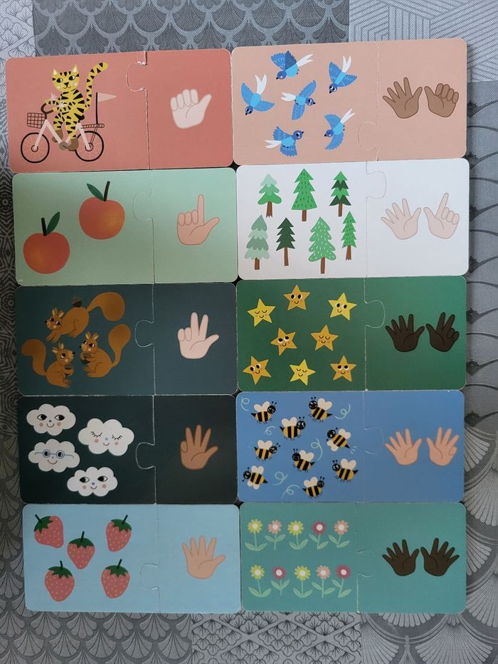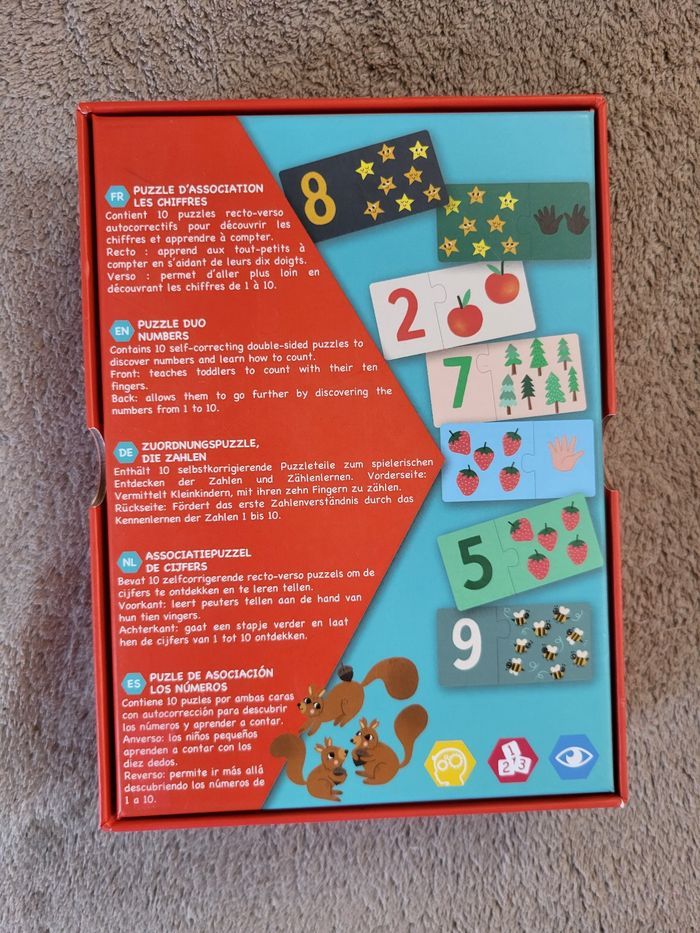 Puzzle d'association - Les chiffres avec auto-contrôle Adapté aux tout-petits, ce puzzle Duo Chiffres est idéal pour découvrir les chiffres et apprendre à compter de 1 à 10 tout en s'amusant ! Puzzle d'associations pour les plus de 3 ans D'un côté un chiffre et des éléments à dénombrer et à associer De l'autre les éléments à associer au bon nombre de doigts Peu utilisé mais une petite pliure sur le 1 ( voir photo) #virgy61jouets #virgy61joueteveil #virgy61joueteducatif