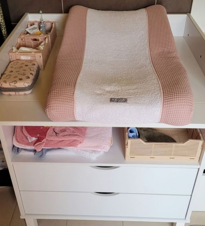 Panier à langer + organiseur – Rose poudré/nude – Parfait état