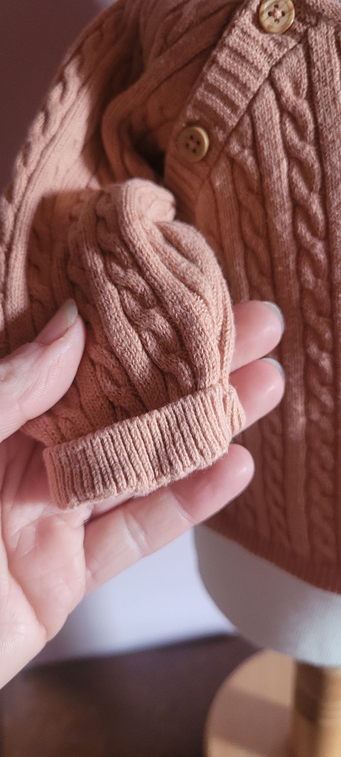 Gilet en maille rose poudré – Kiabi (1 mois)