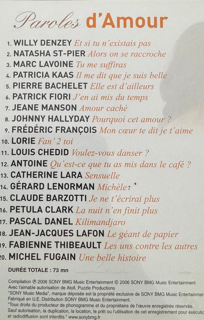 CD compilation, 2006, Paroles d’amour - photo numéro 2