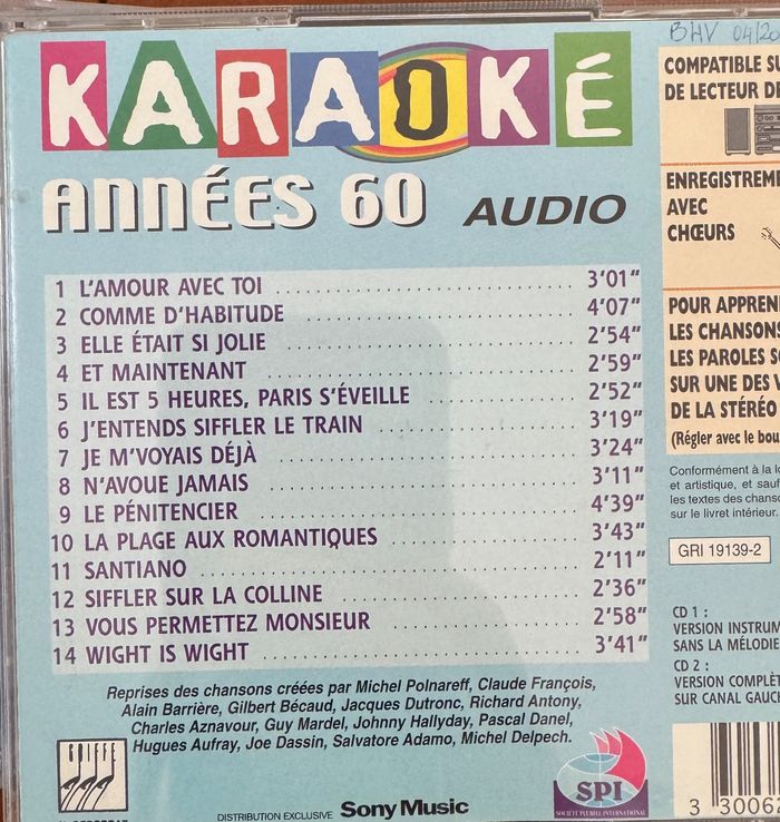 Cd,Soirée Karaoké, années 60