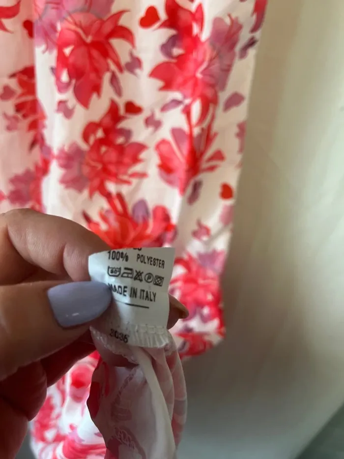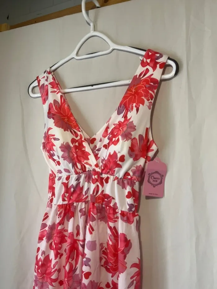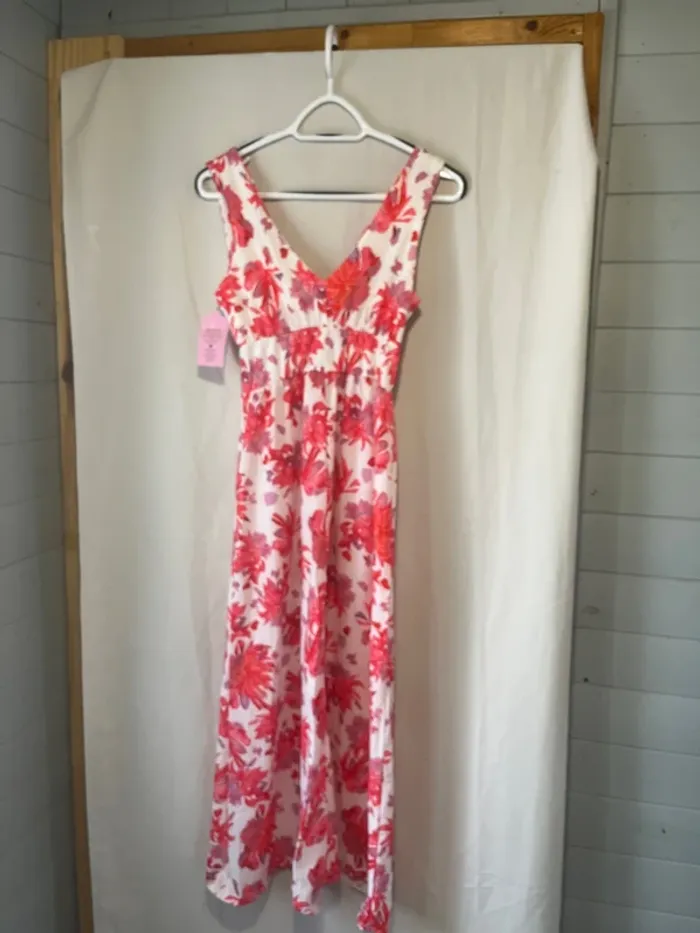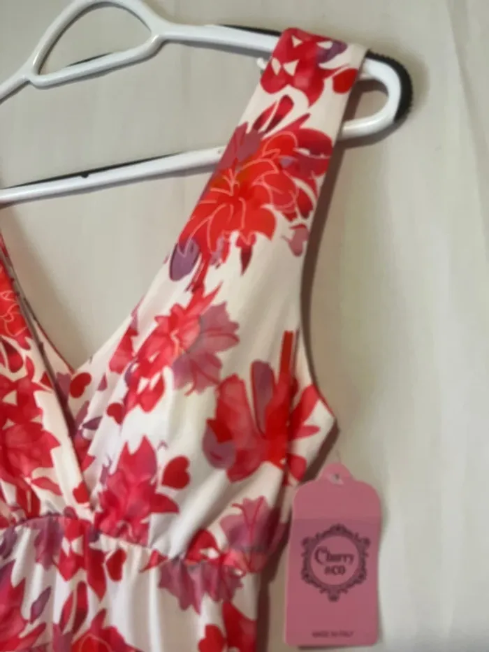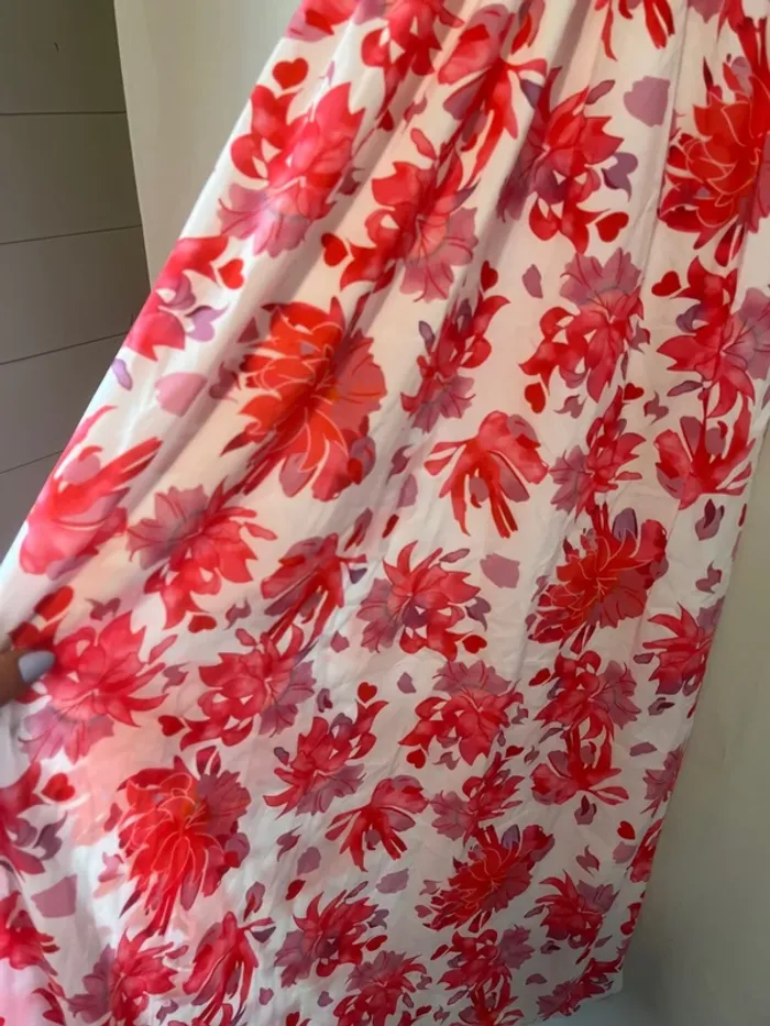 Robe longue Blanche imprimée fleur rouge/mauve Taille S