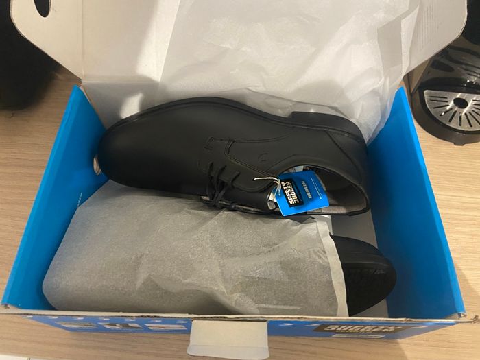 Je vends cette paire de chaussures de travail noires, neuves avec étiquette. Idéales pour tous les environnements professionnels, elles offrent confort et sécurité, de la marque safety jogger - Type de produit : Chaussures à lacets - Univers : Homme - Pointure : 44 - Couleur : Noir - Accessoires inclus : Boîte d'origine, étiquette d'origine De plus les chaussures sont coquées