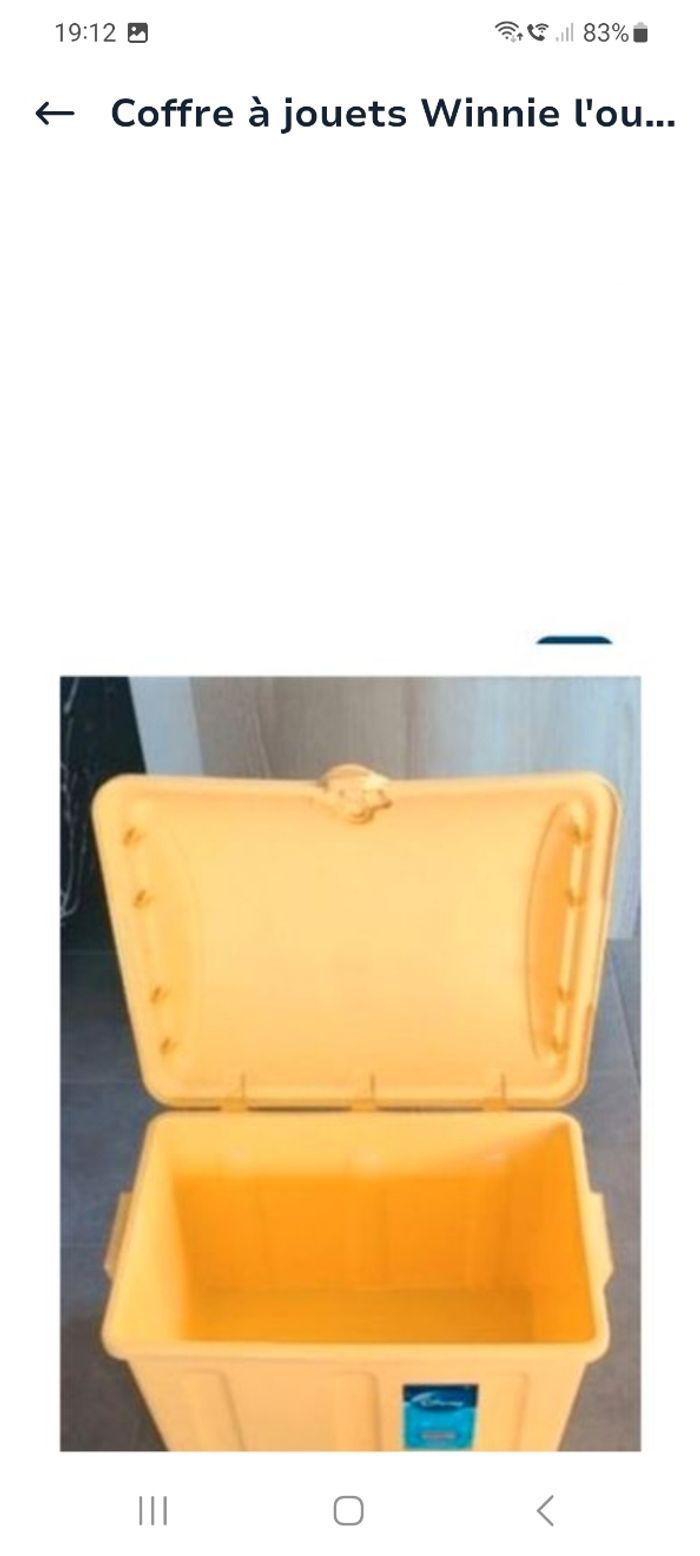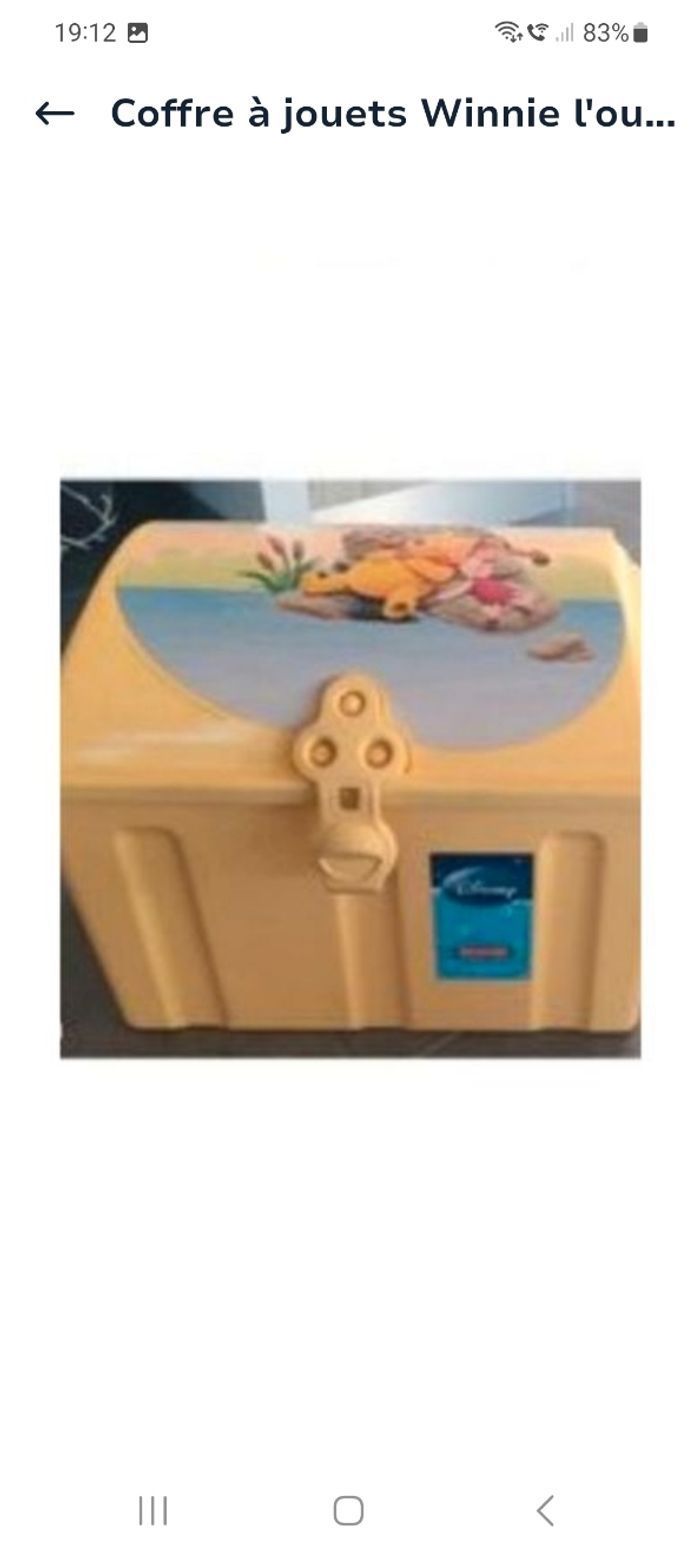 Vend coffre à jouets Winnie l'ourson très bon état idéal pour ranger les jouets d'enfants matière plastique Je vend différents articles à prix intéressant dans mon dressing Possibilité d'envoi par colissimo ou chronopost uniquement