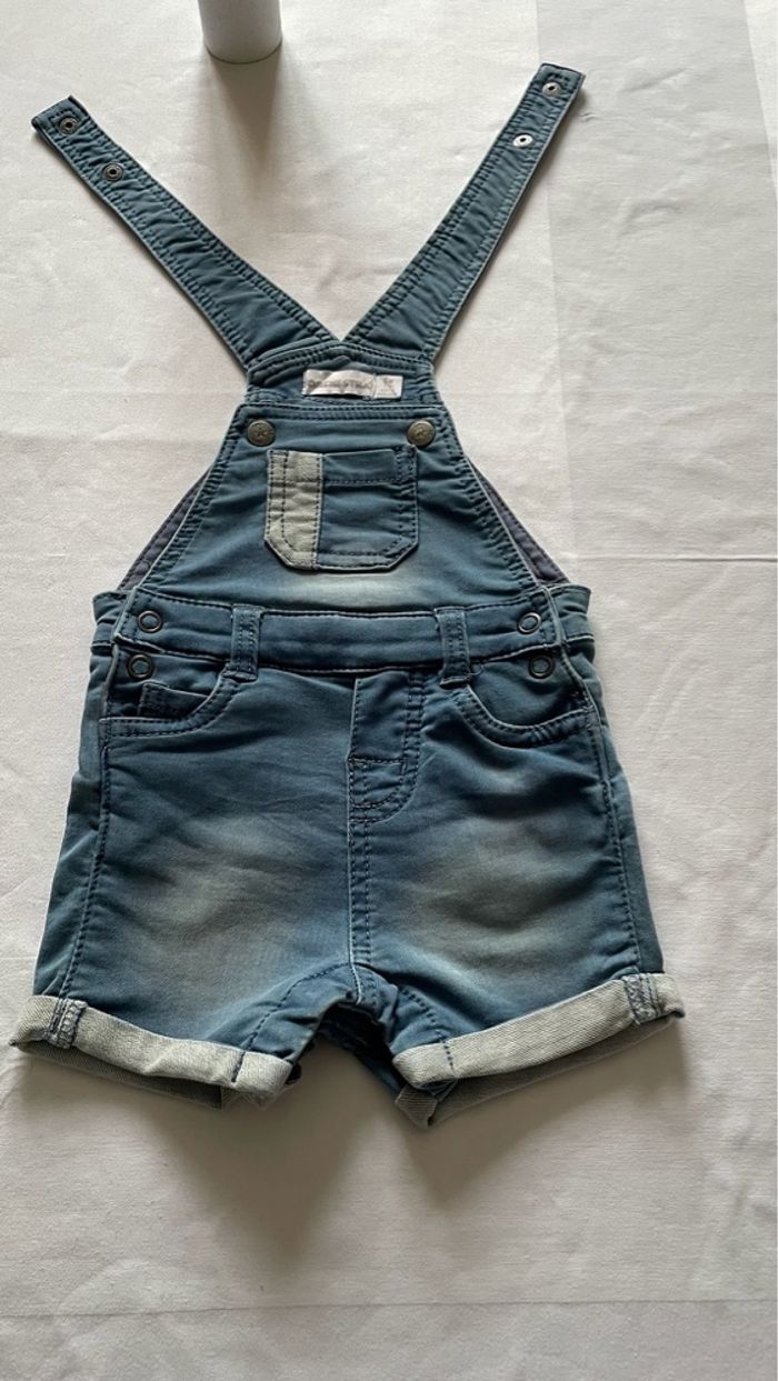 Salopette courte en jeans Peu convenir à un garçon ou une fille Taille 6 mois Très bon état Possibilité de lot