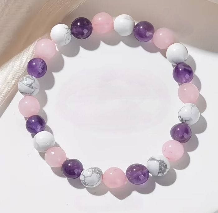 Bracelet artisanal lithothérapie, Vertus: apaisement,réduction du stress, équilibre émotionnel et mental Quartz rose, améthyste et turquoise blanche Perles de 8mm Fait main Retrouvez également d'autres bracelets en perles ou pierres taillées sur mon profil mais aussi des bracelets d'amitié ou Swiftie