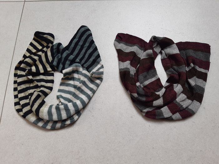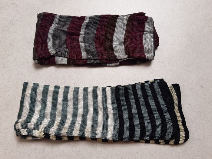 Ils sont relativement courts et légers donc idéalement, conviendront bien à un enfant. Le premier est noir, vert clair, vert foncé et blanc cassé et le second est brun, mauve, gris clair et gris foncé. Très bon état. Prix pour les 2.
