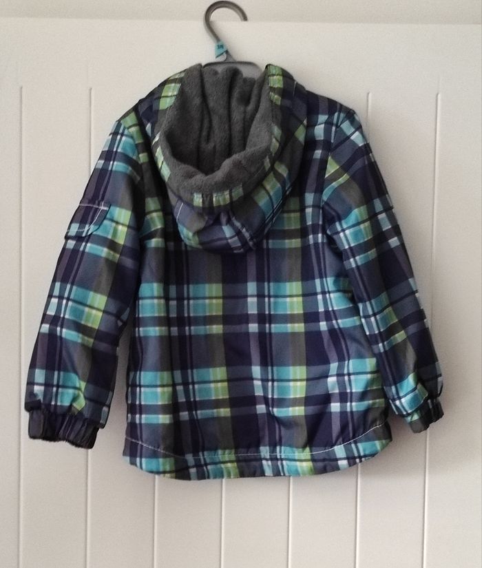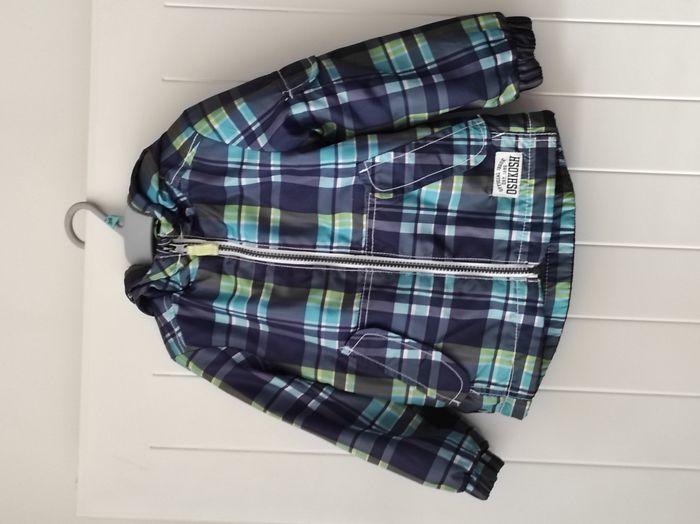 "Joli K-Way pour bébé garçon, taille 24 mois. Doublure polaire intégrale (sauf manches, plus pratique à enfiler) 2 poches pratiques à l’avant Motif carreaux tendance Coloris : marine, vert anis et turquoise Parfait pour la mi-saison : tient chaud sans être trop épais. En très bon état."