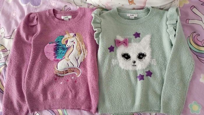 Pull laine ajouré, fille, 3 ans. Tricoté main.