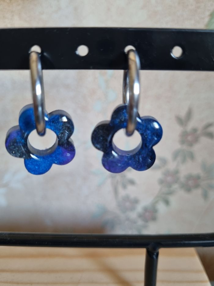 Mini pampilles fleurs vendu sans créole Couleur bleu,violet, noir Taille 2cm En parfait état porté une seule fois