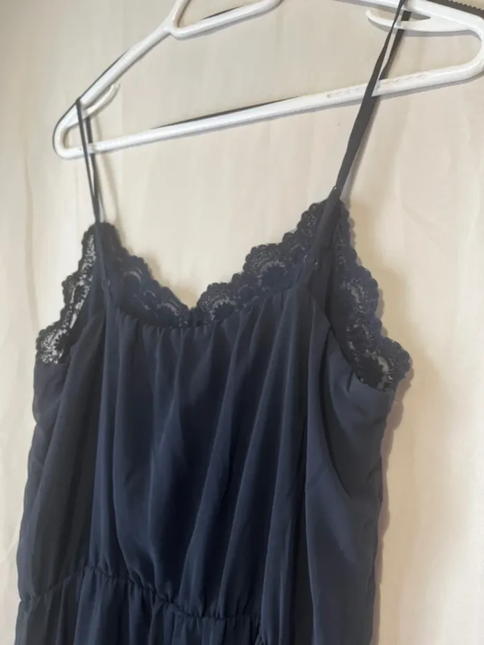 Robe longue Bleue marine Bretelles réglables Taille 42 Aisselle à aisselle 49 cm, Longueur 150 cm Voilage avec doublure