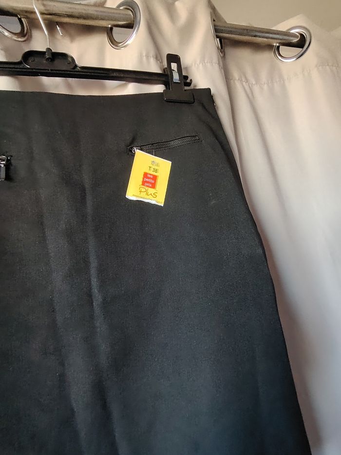Jupe noire taille 38 Jolie jupe noire avec deux poches zippées à l’avant, coupe moderne et facile à porter. Tissu confortable, parfaite pour le quotidien comme pour le bureau. #jupe #jupefemme #modefemme #lookdujour #ootd #vêtementsfemme #taille38 #videDressing #bonnesaffaires #stylefemme #basiqueindispensable