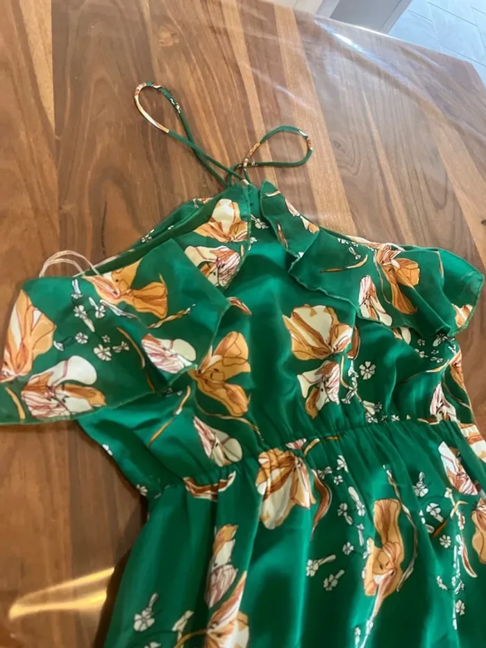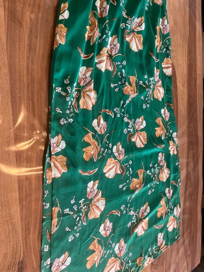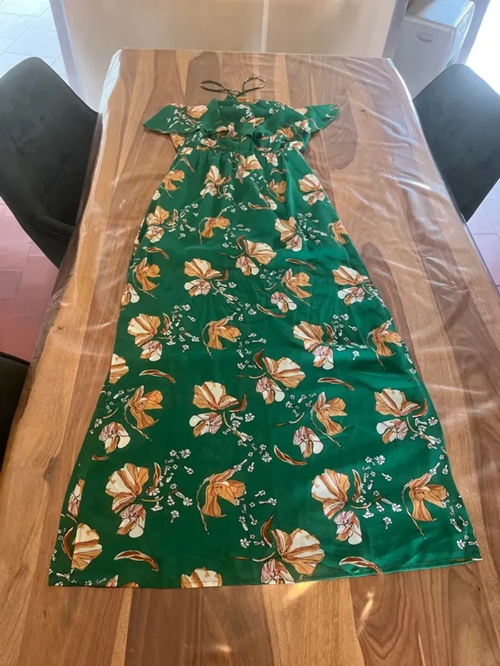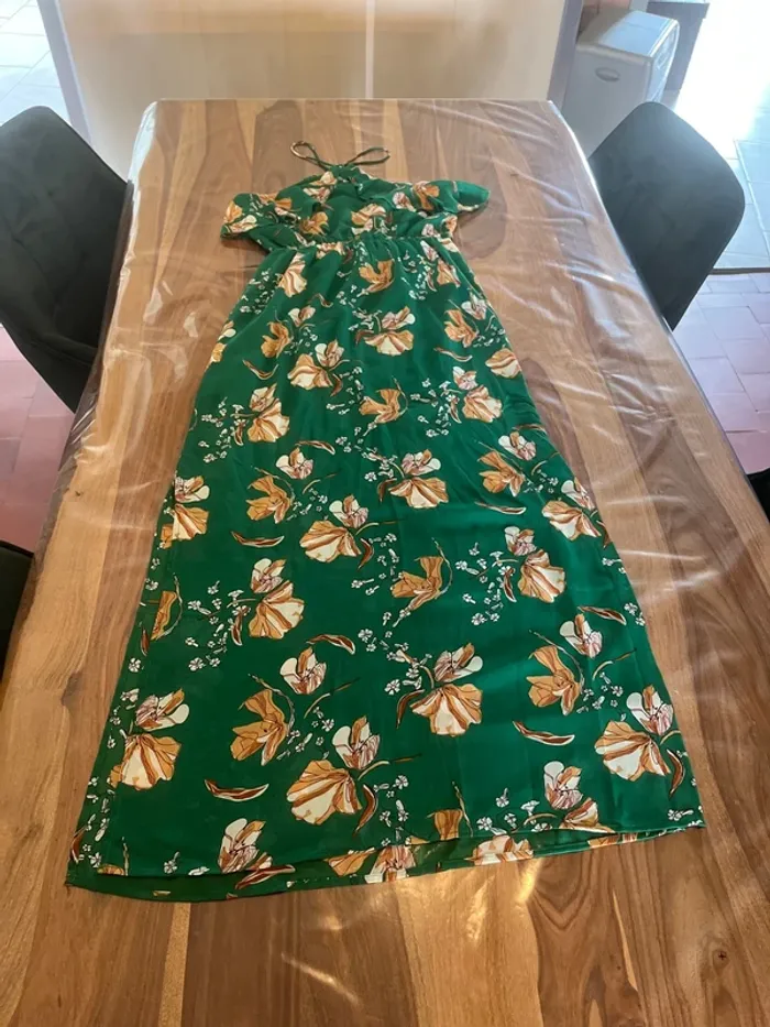 Robe longue Verte imprimée fleurs Taille M Ouverte sur les côtés