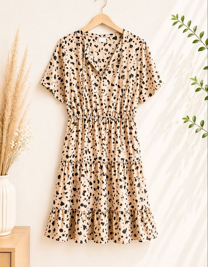 Robe d'été beige à pois noirs taille S Fluide et légère, parfaite pour les beaux jours. Comme neuve, très peu portée, aucun défaut. Envoi rapide #robe #robedete #modefemme #commeneuve #femme #robefemme
