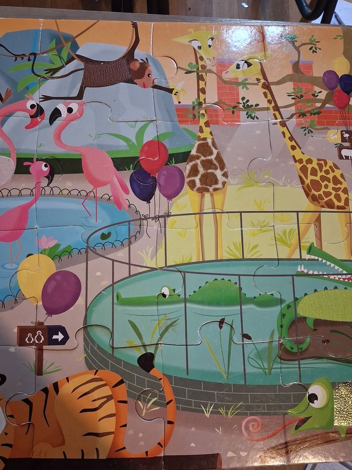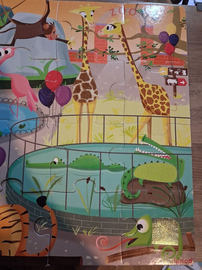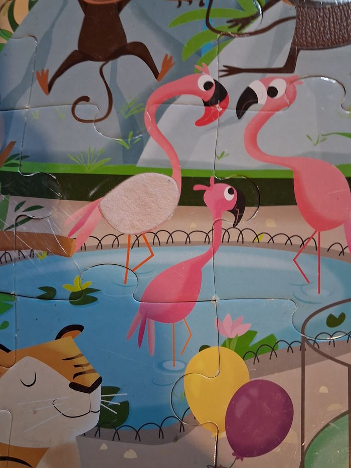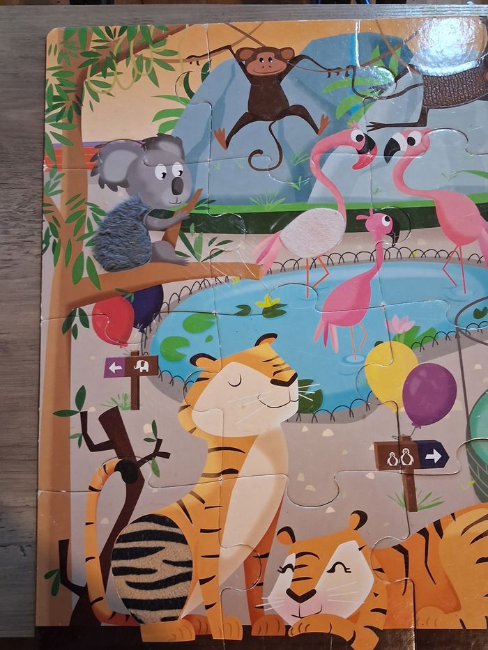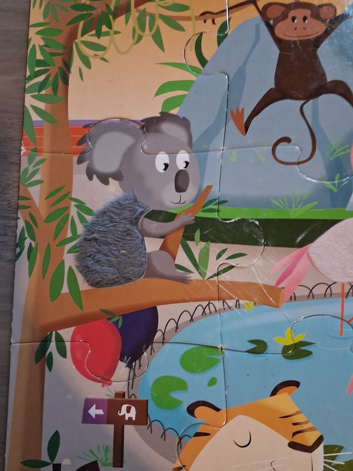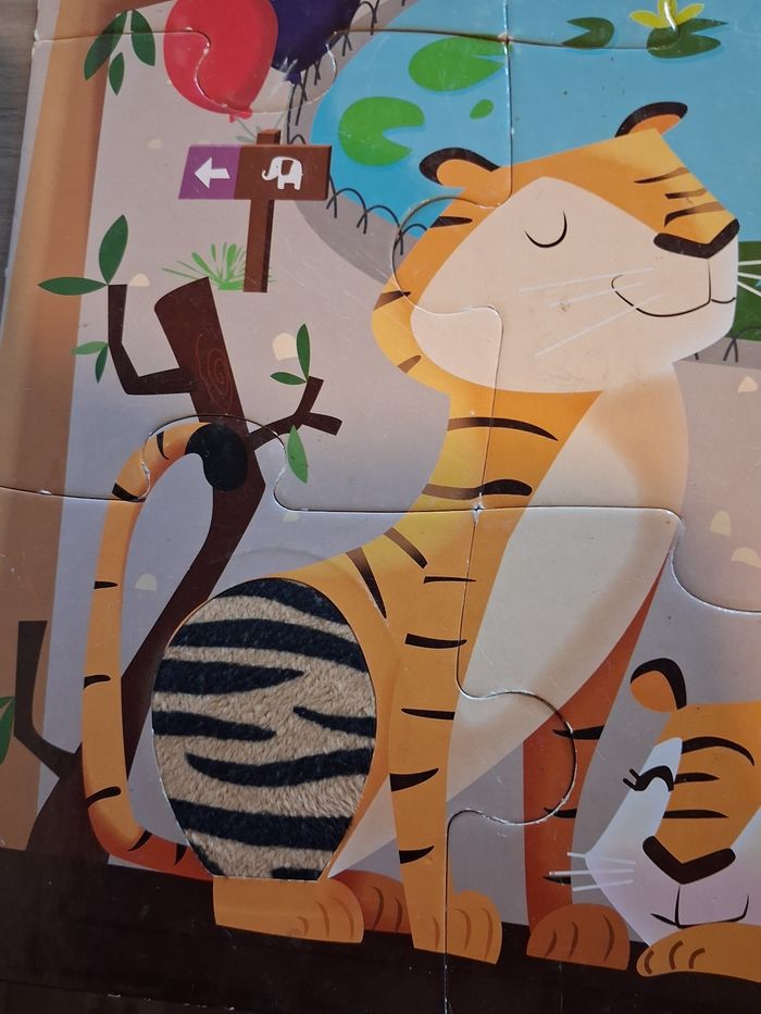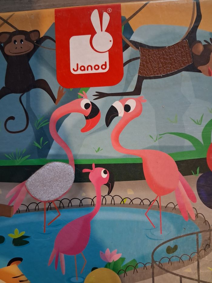 Bien plus qu'un puzzle ! L'enfant assemble l'image et peut toucher les différentes textures (poils du tigre, peau du crocodile, plumes du flamant rose). ​Âge : 3-6 ans. ​Bénéfice : Stimule le toucher et la motricité fine. Marque Janod (Design France).