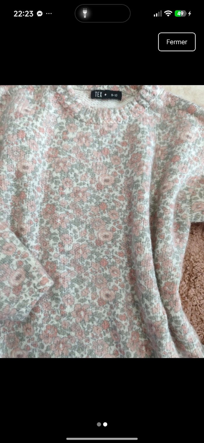 Pull laine ajouré, fille, 3 ans. Tricoté main.