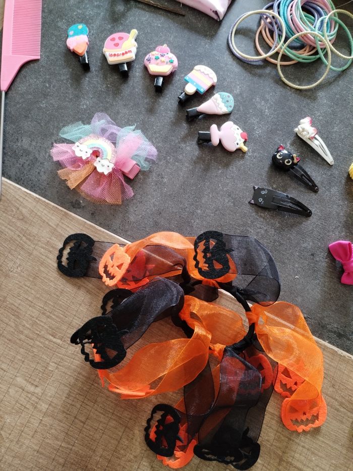 De tout. Beaucoup neuf. Peigne, chouchous, élastiqueq, barrette, serre-tête, bandeau...