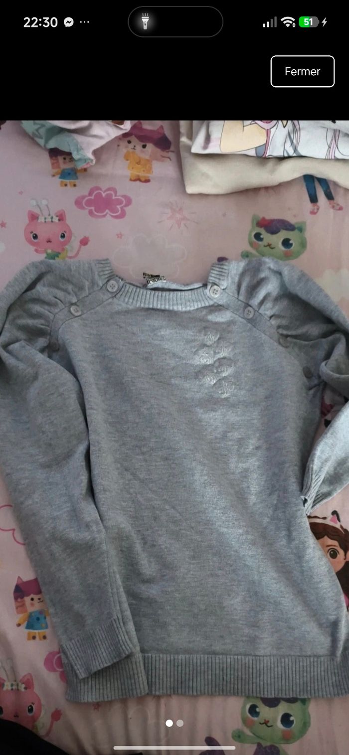 Pull laine ajouré, fille, 3 ans. Tricoté main.
