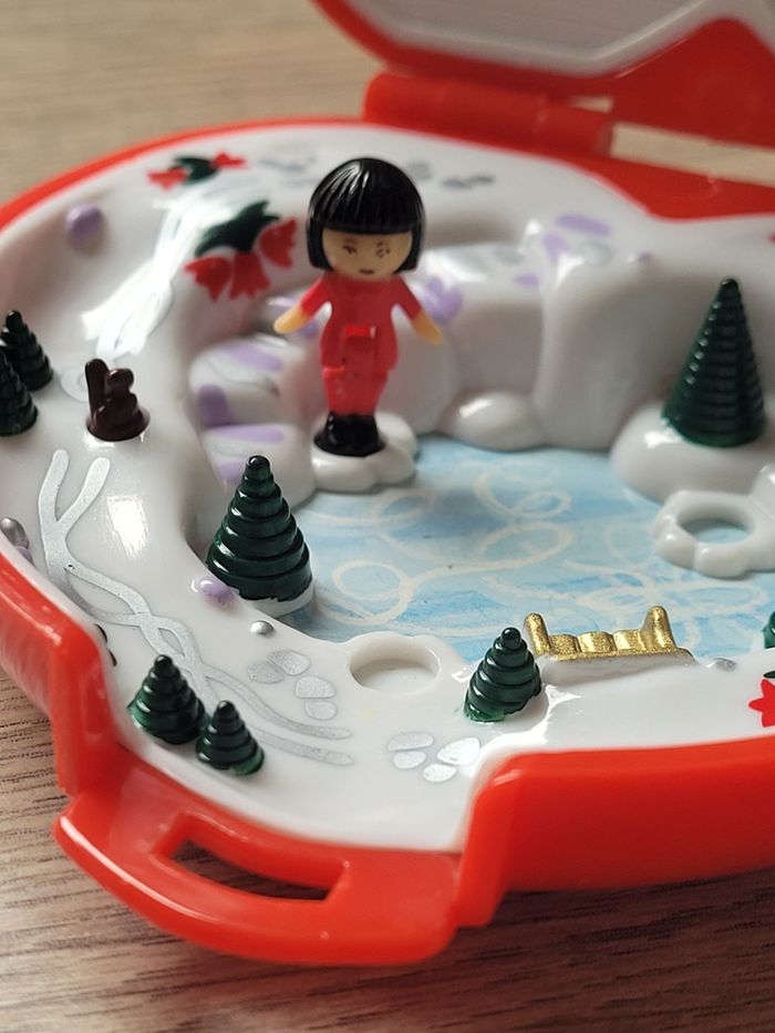25% de réduction en l'achetant sur Beebs avec le code promo LILAS25 Polly pocket Christmas de 1989 Très bon état Pas de décoration La boîte ferme parfaitement Charnières impeccables Avec le personnage qui tient très bien debout