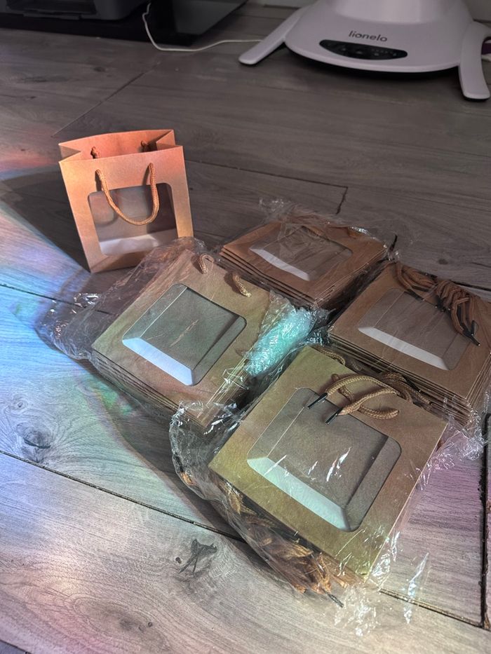 Sac luxe en kraft, poignées cordon, avec fenêtre pour valoriser des compositions préparées à l'avance . Pour tous commerces. Dimensions 15 cm de hauteur 14 cm de longueur et 7 cm de profondeur . 4 lots de 10 pièces = au total 40 sac.