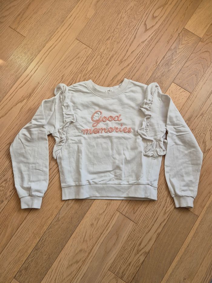Pull / sweat pour fille, en bon état - Marque : Mng (Mango) - Taille : 11 - 12 ans (152 cm) - Coloris : blanc crème, inscription good memories sur la poitrine - Froufrous aux épaules - Petites taches peu visibles sur les manches - Lavable en machine à 30°C - Composition: 100% coton - Maison non fumeur et sans animaux #elfedneiges12ans #elfedneiges11ans #elfedneigesfille