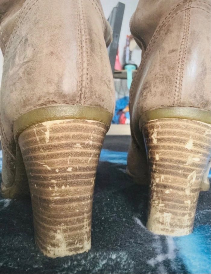 Botte cuir gras marron clair Cuir à nettoyer et talon abîmé #eaguililachaussures #eaguilillafemme