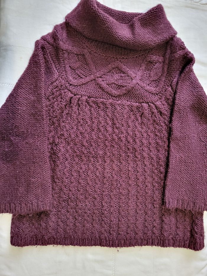 Pull laine ajouré, fille, 3 ans. Tricoté main.