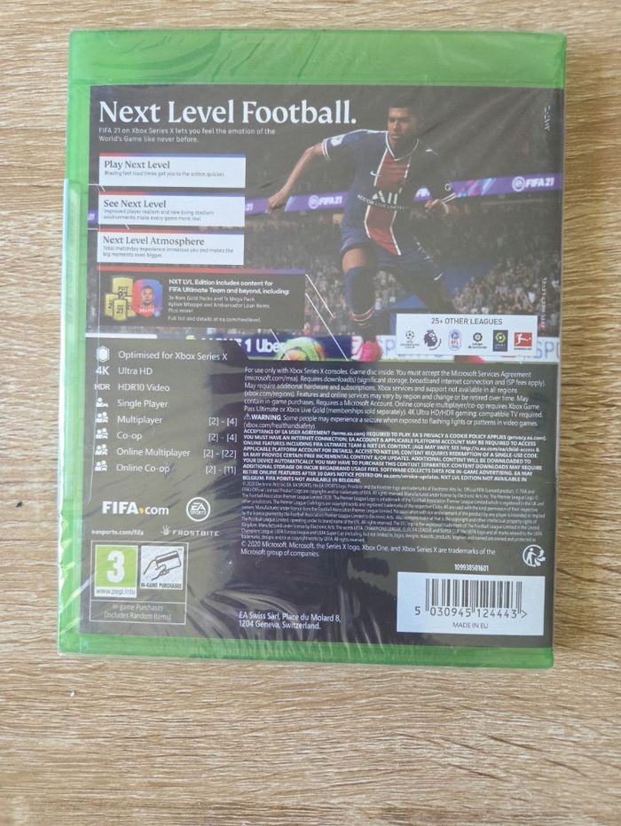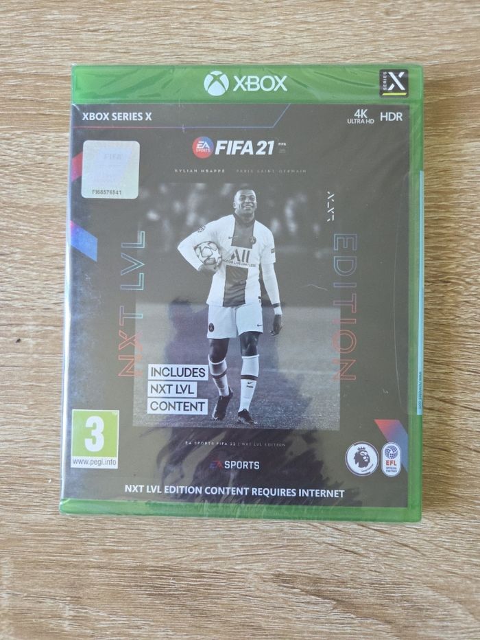 Je vends le jeu FIFA 21 pour Xbox Series X, idéal pour les amateurs de jeux de football et de simulation sportive. - Titre : FIFA 21 - Type de produit : Jeu vidéo - Plateforme : Xbox Series X - Genre : Simulation sportive - Édition : NXT LVL Edition - Contenu : Complet avec boîte et manuel - Caractéristiques : 4K, HDR, optimisé pour Xbox Series X État neuf sous-blister.