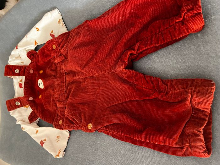 En bon état, ensemble très mignon Couleur rouge terracotta Boutons à pression en dessous pour faciliter le change Envoi soigné et rapide ☺️