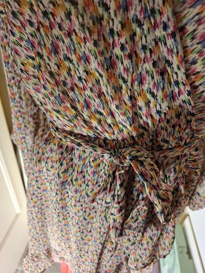 Une magnifique robe multicolore avec des petits frou-frou en bas taille s-M