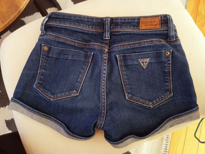 Short en jean marque guess, court taille haute. Taille 24 ,correspond à un XXS. Largeur taille = 32 cm #shortjeanguess #xxs32