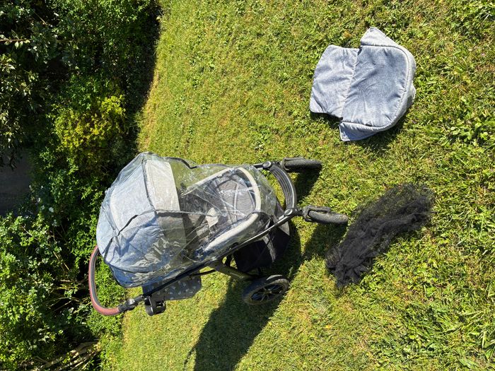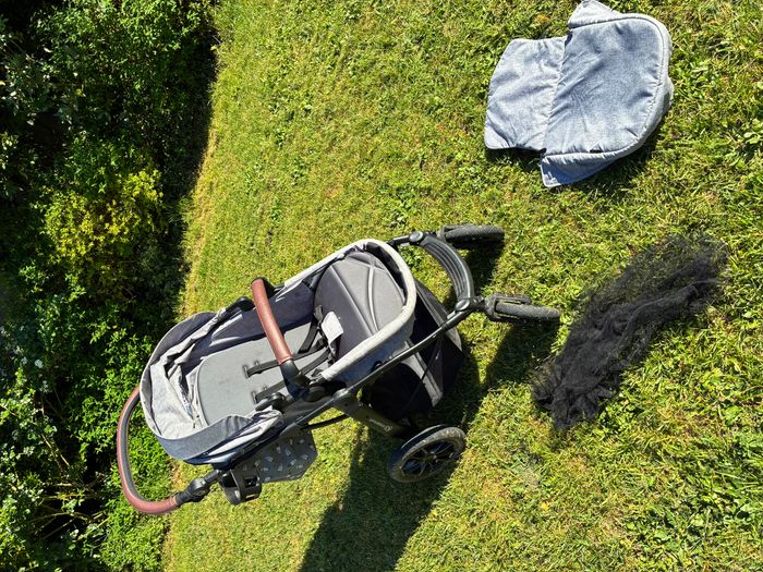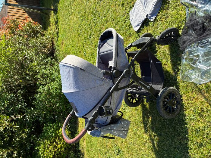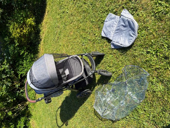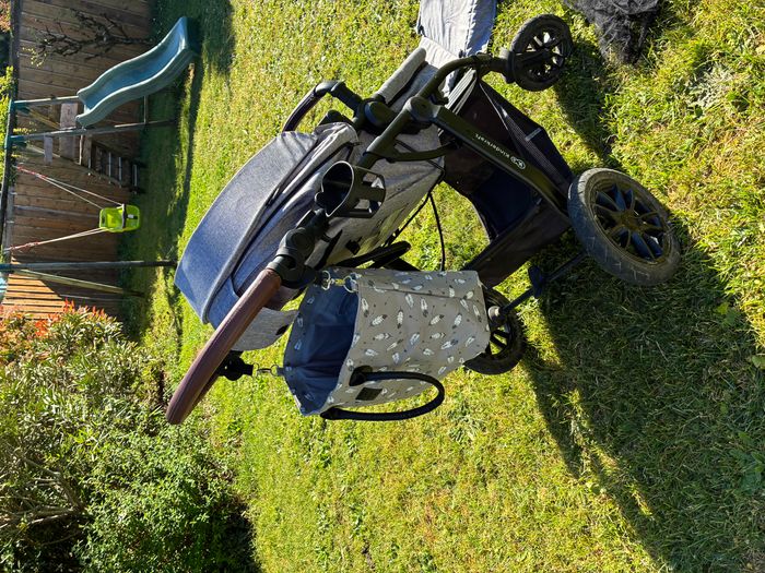 Complète, très bon état, Poussette 3-en-1 pour les enfants jusqu'à 22 kg. poussette bébé, nacelle et siège auto. Siège auto pour enfant pesant jusqu'à 13 kg. Le siège auto est testé et approuvé selon la norme de sécurité européenne ECE R 44/04. Il a une housse de pluie avec une protection solaire SPF50+. Grandes roues arrière gonflables d'un diamètre de 30 cm. Roues avant pivotantes à 360 degrés, qui peuvent être verrouillées. La nacelle peut être installée avec l'arrière ou l'avant dans le sens de la marche. La nacelle est recommandée jusqu'à 9 kg. Guidon réglable en 8 positions et recouvert de cuir écologique. Grand panier. Possède un sac en éco-cuir Deux supports universels sont inclus. Structure: acier. Tissu: 100% polyester. Dimensions: Longueur 91 cm, Largeur 61 cm, Hauteur 105 cm. Montage simple et rapide.
