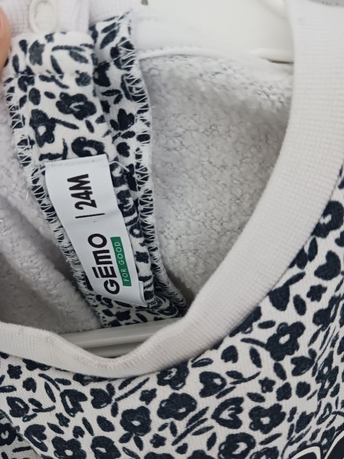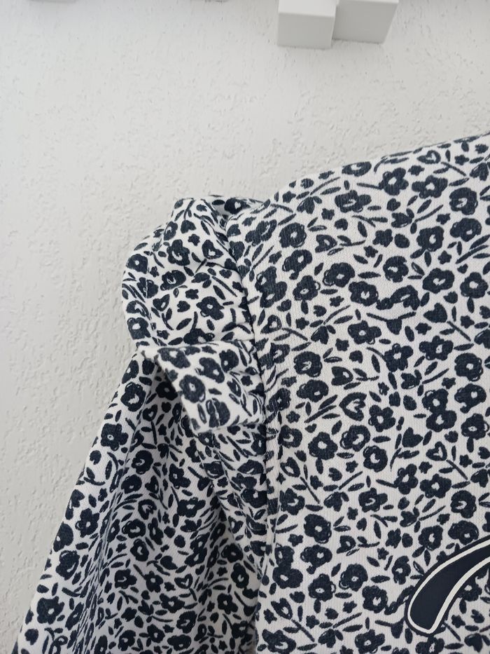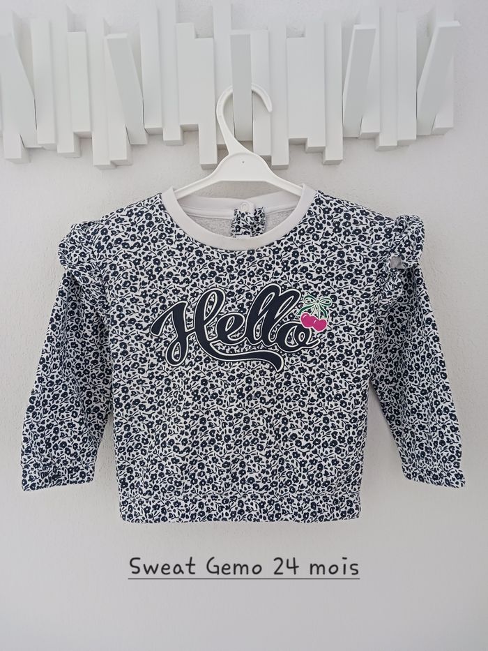 Joli sweat Gemo 24 mois, couleur blanc avec des petites fleurs bleues.