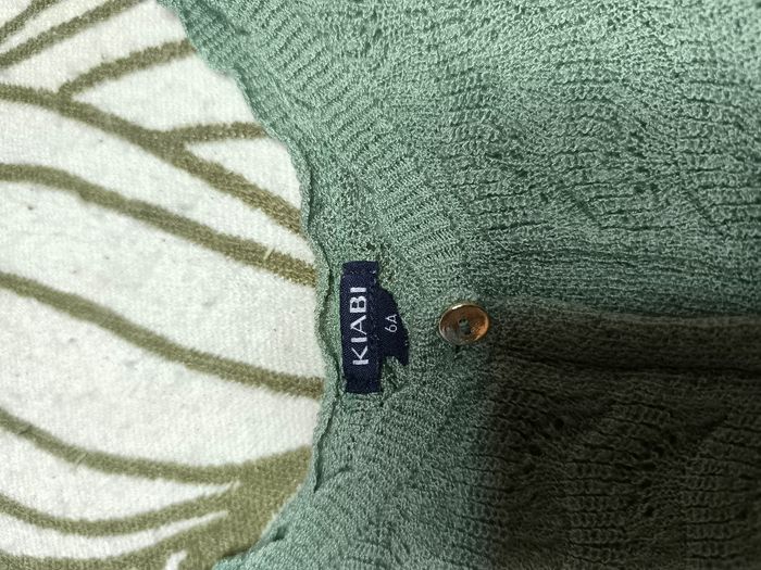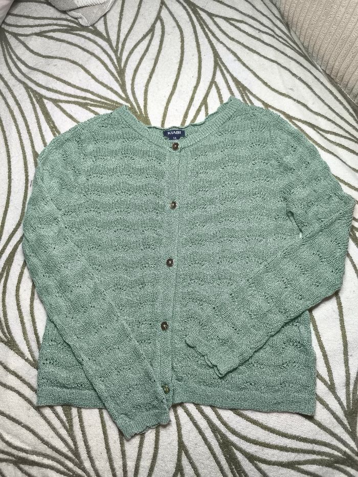 Très jolis petit gilet vert sauge ajourée en très bon état,aucuns défauts.