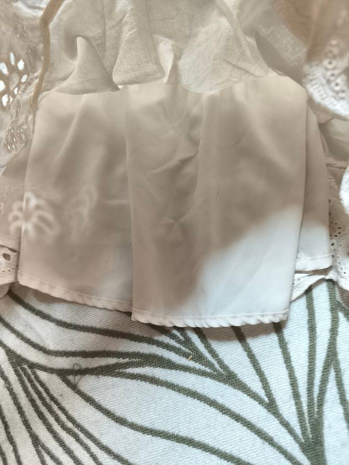 Blouse a bretelles ,réglables, doublée broderies anglaises sur le bas.tres peu portée sans aucuns défauts.